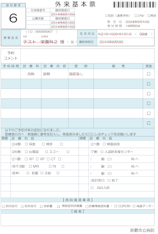 すべての診察・検査終了後、ファイルと「外来基本スケジュール」を計算コーナーへ提出してください。